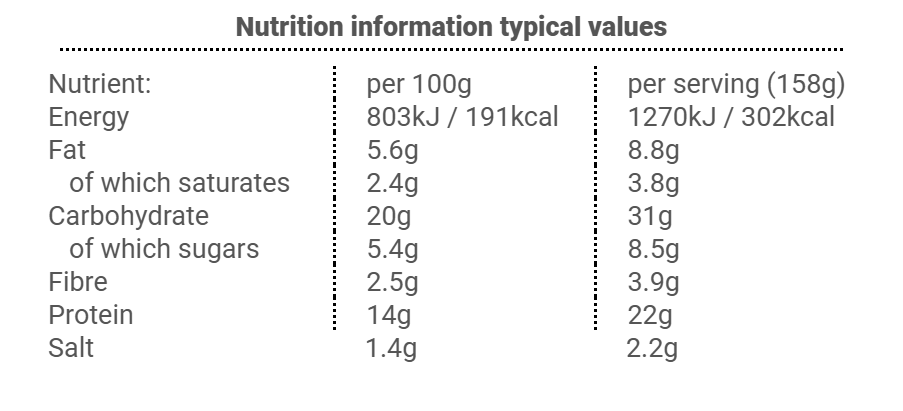 Remove the lid and place the container directly into a preheated oven at 150°C. Heat for 10–15 minutes or until warmed through.