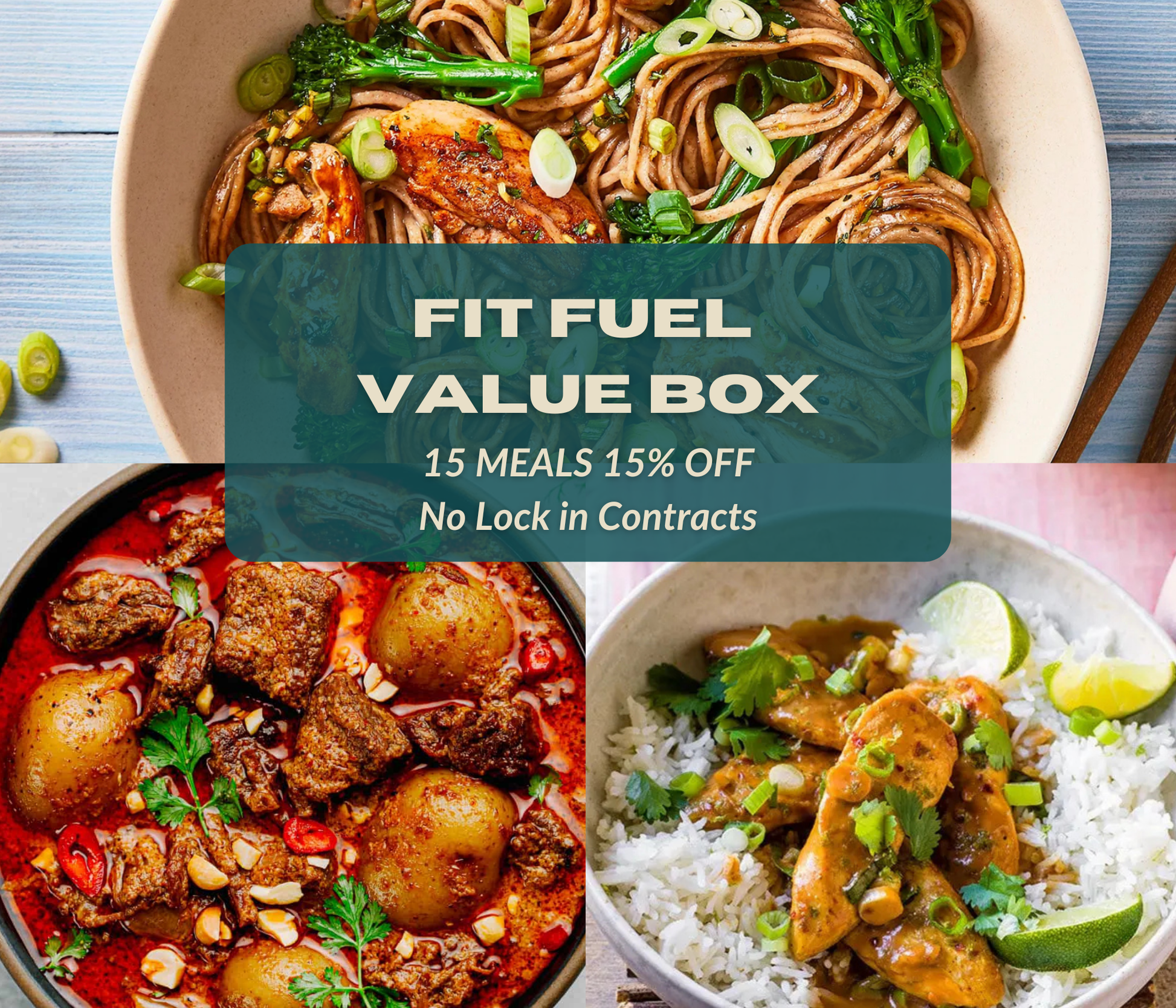 Simple, high-protein, and hassle-free. Our Fit Fuel Box is designed to take the thinking out of your week, with 15 macro-friendly meals to keep you fuelled, consistent, and on track.